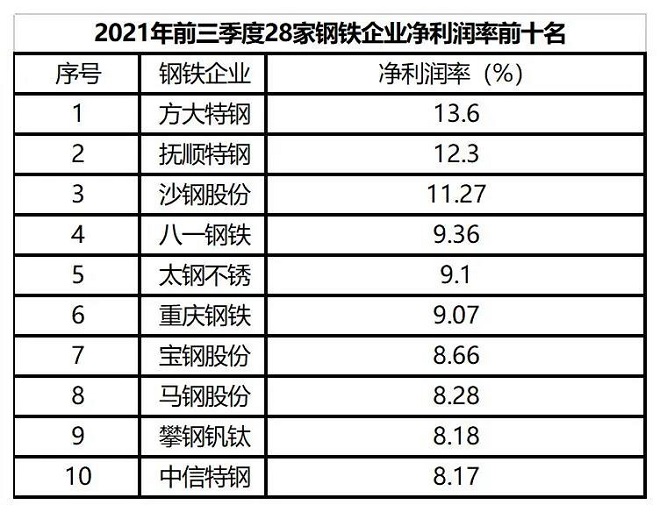 9、撫順特鋼 10、方大特鋼