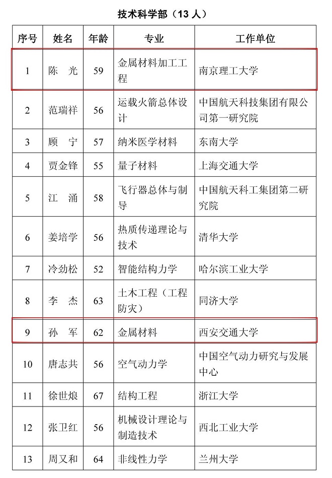 其中,中國科學院技術科學部共產生13位院士,其中有2位專業與金屬材料相關。