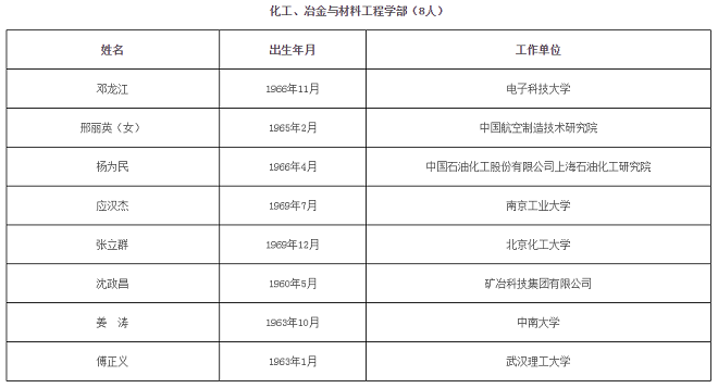 其中,中國工程院化工、冶金與材料工程學部共產生8位院士。