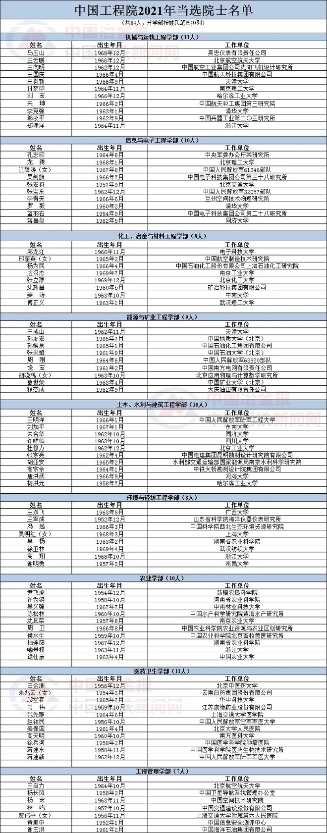 中國工程院發布了2021年院士增選結果,共選舉產生84位中國工程院院士和20位中國工程院外籍院士。