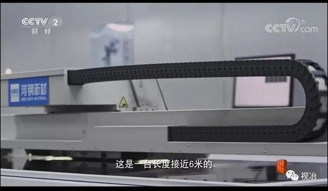家電鋼板高顏值的秘密是什麼?就在一個車間裏。一台長度接近6米(mi)的(de)大(da)型(xing)數(shu)字(zi)噴(pen)墨(mo)打(da)印(yin)機(ji)正(zheng)在(zai)打(da)印(yin),打(da)印(yin)機(ji)經(jing)過(guo)的(de)地(di)方(fang),油(you)墨(mo)附(fu)著(zhe)在(zai)鋼(gang)板(ban)的(de)表(biao)麵(mian),形(xing)成(cheng)了(le)星(xing)空(kong)軌(gui)跡(ji)的(de)立(li)體(ti)紋(wen)理(li)。油(you)墨(mo)是(shi)化(hua)工(gong)材(cai)料(liao),鋼(gang)板(ban)是(shi)金(jin)屬(shu)材(cai)料(liao),過(guo)去(qu),要(yao)把(ba)這(zhe)兩(liang)種(zhong)不(bu)同(tong)的(de)材(cai)料(liao)結(jie)合(he)在(zai)一(yi)起(qi),需(xu)要(yao)加(jia)熱(re)到(dao)兩(liang)三(san)百(bai)攝(she)氏(shi)度(du)才(cai)能(neng)固(gu)化(hua)。但(dan)現(xian)在(zai),在(zai)常(chang)溫(wen)下(xia)通(tong)過(guo)打(da)印(yin)機(ji)就(jiu)能(neng)完(wan)成(cheng)。正(zheng)是(shi)河(he)鋼(gang)做(zuo)了(le)很(hen)多(duo)基(ji)礎(chu)塗(tu)層(ceng)的(de)創(chuang)新(xin)工(gong)作(zuo),才(cai)呈(cheng)現(xian)出(chu)家(jia)電(dian)鋼(gang)板(ban)如(ru)此(ci)漂(piao)亮(liang)的(de)高(gao)顏(yan)值(zhi)。