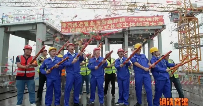 伴隨最後一根鋼梁安裝入位,這棟25層高的鋼結構住宅,完成了全部主體結構的施工。2019年,在國家主導下,鋼結構裝配式建築開始在民用領域試點。