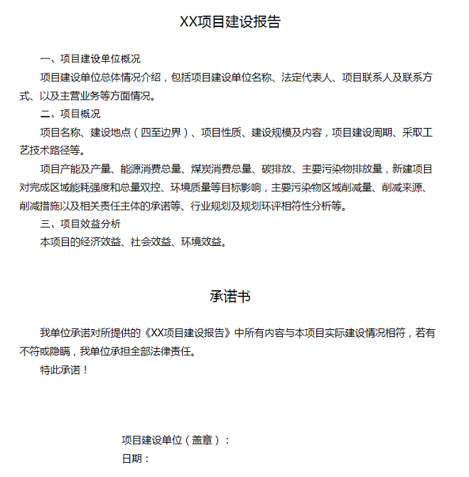 (四)企業編製擬建“兩高”項目建設報告。報告內容主要包括:項目建設內容、投資規模、建設期限、產能及產量、項目初步選址、年綜合能源消費量、煤炭消費量、汙染物排放量及區域削減替代方案、碳排放量等內容。企業“兩高”項目建設報告(式樣見附件2)呈報縣(市、區)發展改革部門。