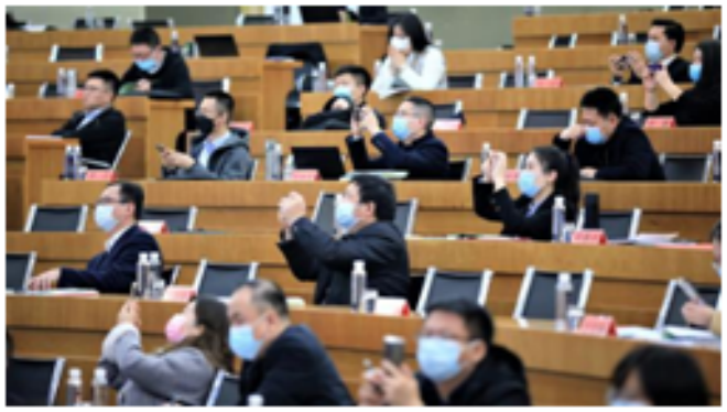 圖為杜軍主持2022年報工作布置會