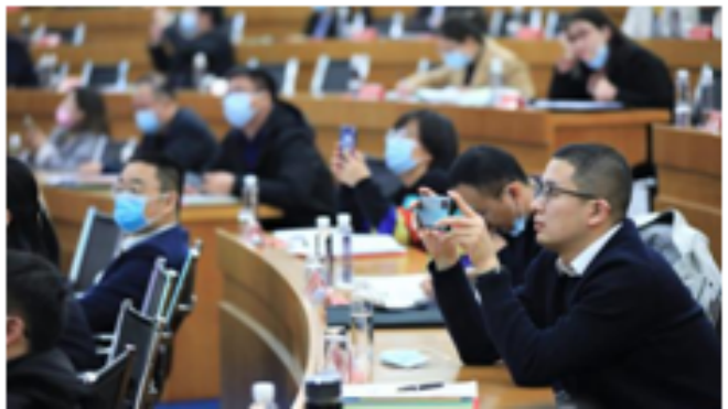 圖為與會代表高度關注會議內容,紛紛拿出手機拍攝記錄