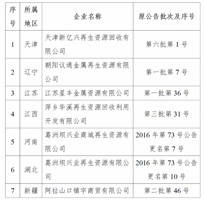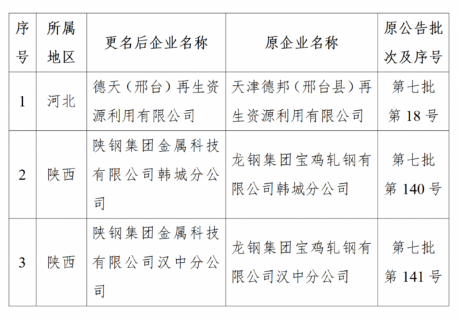 變更《廢鋼鐵加工行業準入條件》公告名稱的企業名單