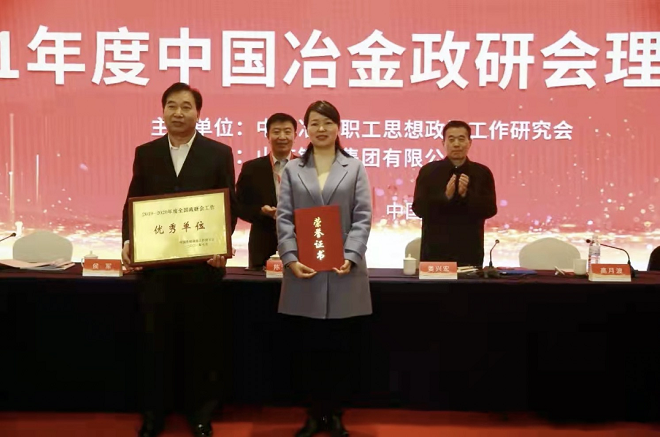 會議對冶金企業獲得2021年度中國思想政治工作研究會優秀個人和集體進行了表彰並頒獎。首鋼京唐公司獲得了2021年度中國思想政治研究會工作優秀單位稱號,南鋼黨委書記、董事長黃一新榮獲2021年度中國思想政治工作研究會工作優秀個人稱號。邱銀富和王芳作為代表接受頒獎。