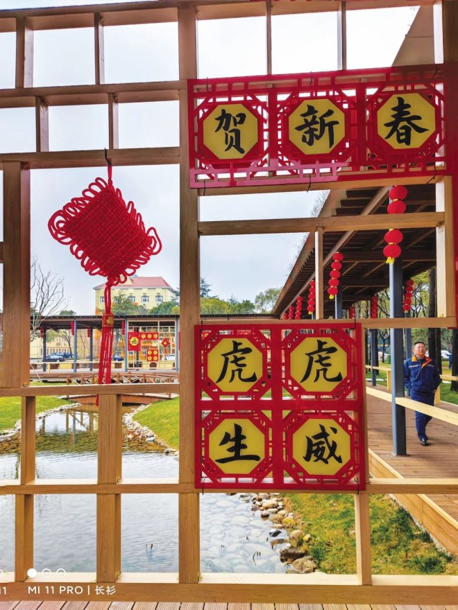 春節即將到來,為確保沙鋼幹部員工特別是留在江蘇張家港過年的職工度過一個歡樂、祥和的春節,沙鋼精心策劃係列暖心活動,營造出韻味十足的節日氛圍。圖為沙鋼職工紛紛與廠區裏的虎年春節主題景觀合影。(黃超/文 孫靜波 /攝)