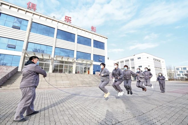 1月25日,河鋼唐鋼行政福利處職工在業餘時間進行跳大繩比賽(如圖)。春節前夕,該處工會組織職工開展“雲健身 迎新年”係列文體活動,共有120餘名職工通過線下錄製視頻、線上評比的方式參加了跳繩、踢毽子、俯臥撐等多項健身運動。(王海豔/文 趙輝/攝)