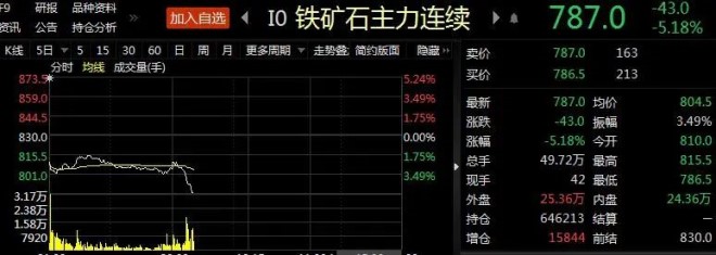 今日8:58國家發展改革委發布約談消息後,鐵礦石市場反應迅速,截至9:20,鐵礦石期貨主力合約跌幅超過5%。