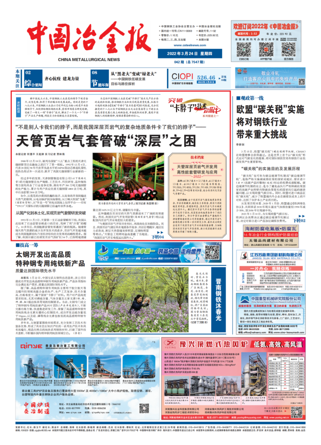 “天管生產的深層頁岩氣開發用高性能套管下井後套損率低,意味著安全性強;可以根據需求進行10多種套管組合,做到‘適合的才是最好的’,意味著經濟性強;還可以提供在油田設計開發過程中全過程的技術服務,意味著配套服務好。”張哲平自豪地向《中國冶金報》記者介紹,“天管研發的套管更適用於我國頁岩氣井的開發。從這個角度來說,我國使用的頁岩氣套管優於國外同類產品。”