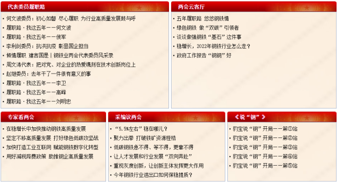 圖為中國鋼鐵新聞網兩會專題