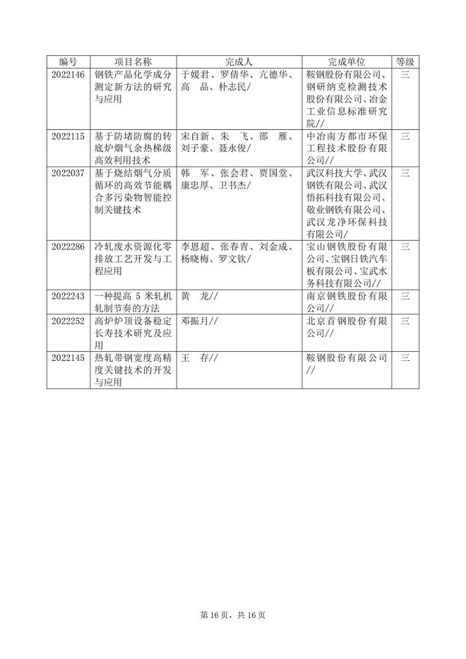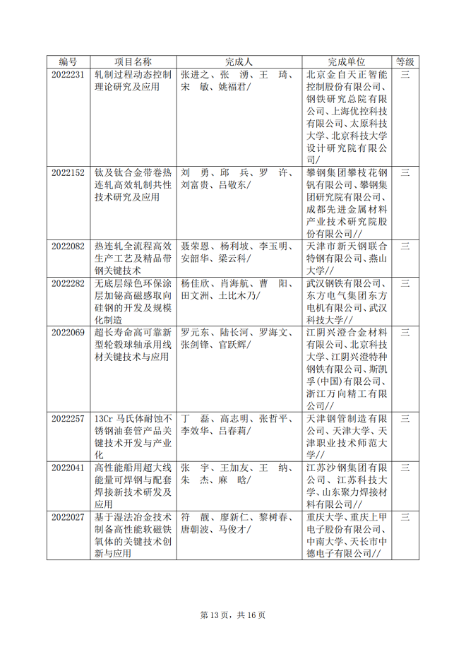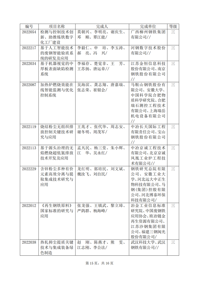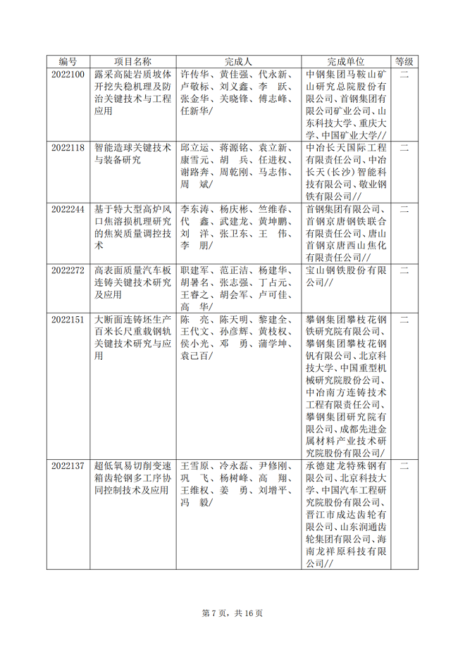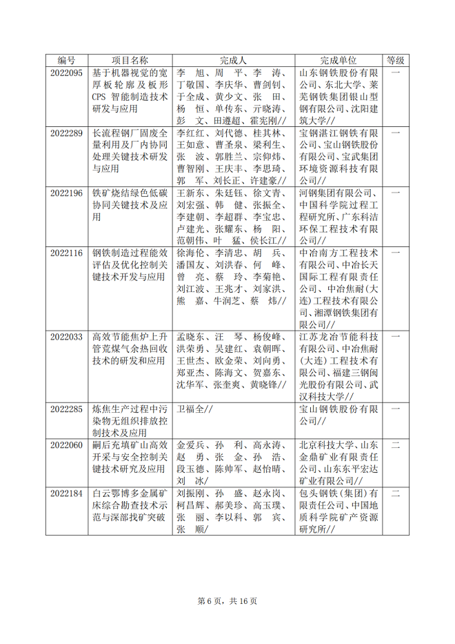 2022年中國鋼鐵工業協會、中國金屬學會冶金科學技術獎專業評審推薦獲獎項目公告