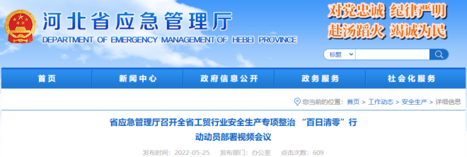 5月24日,河北省應急管理廳召開全省工貿行業安全生產專項整治“百日清零行動”動員部署視頻會議。