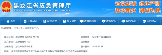 黑龍江應急管理廳印發“百日清零行動”工作實施方案,自6月1日至9月10日,通過安排部署、自查自改、執法檢查、督導提升、全麵總結五個階段紮實推進“百日清零行動”。