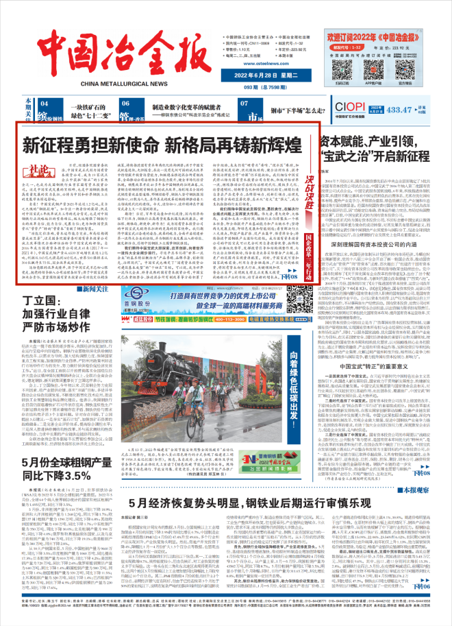中國冶金報社論:新征程勇擔新使命 新格局再鑄新輝煌