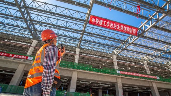 ▲2021年5月28日,北京豐台站主體結構全麵封頂