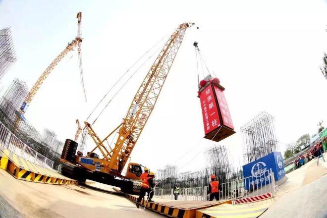 ▲2019年4月21日,北京豐台站首件鋼柱吊裝