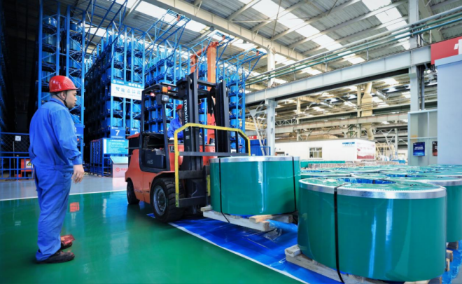 太鋼精密帶鋼公司生產車間職工正在轉運剛下線的產品