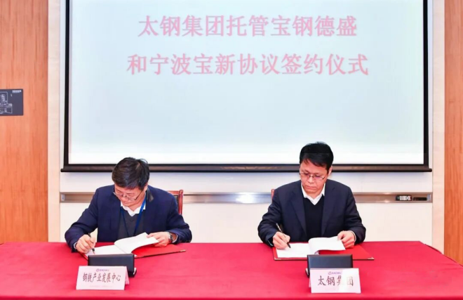 2020年12月30日,太鋼托管寶鋼德盛和寧波寶新協議簽約儀式在上海寶武大廈舉行。作為被托管單位,寶鋼德盛和寧波寶新對這位新“家長”十分認可:“太鋼是全球不鏽鋼行業領軍企業,擁有先進的技術裝備、優秀的人才隊伍和雄厚的研發實力,我們要主動融入太鋼。”