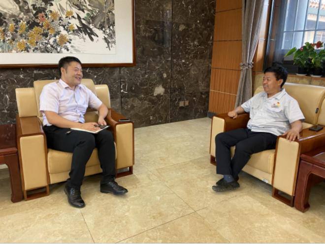 圖為晉南鋼鐵集團總裁張天福(右)接受本報記者專訪
