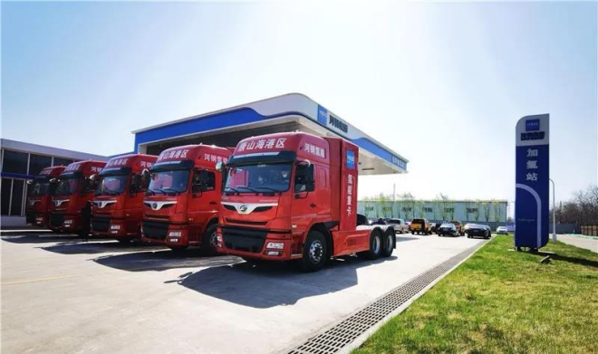 2021年7月5日,河鋼集團唐鋼公司加氫站及30輛氫能重卡投運。