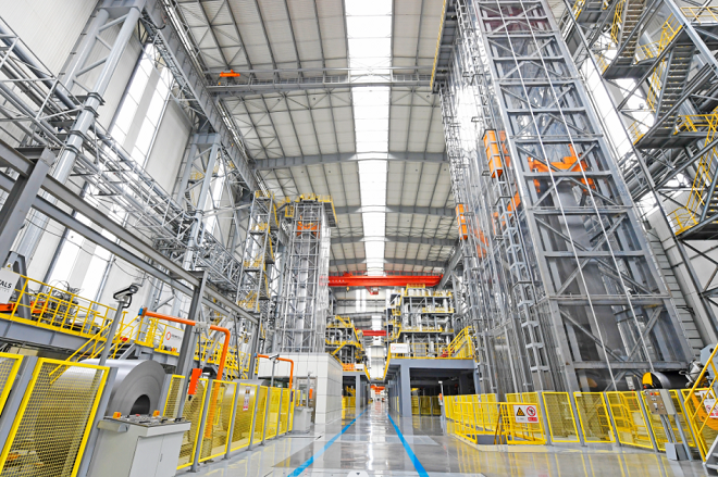 河鋼全麵實施“鋼鐵向材料、製造向服務”改革創新,駛出產業升級、產品高端的高質量發展“加速 度”。圖為河鋼高強汽車板生產線。