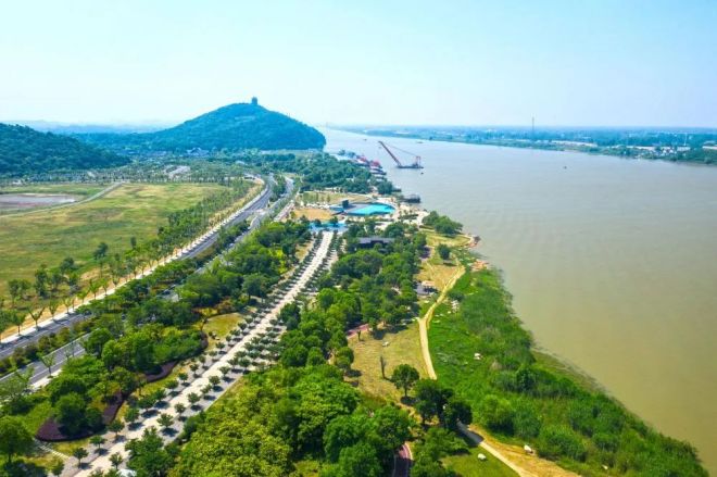 安徽省馬鞍山市長江岸線景觀帶(2022年5月17日攝,無人機照片)。新華社發