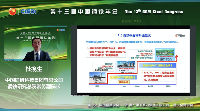 杜挽生在《提升材料品質,促進低碳發展》的報告中指出,提升鋼鐵材料使用效率,是鋼鐵工業減碳最有效的途徑之一。高性能化和高品質化,並實現減量化、長壽命化和高效能化應用,是鋼鐵材料高效利用、低碳發展的重要方向。他介紹了近年來鋼鐵研究總院圍繞國家高端裝備和重大工程“自主可控”和“走出去”戰略,研發超高強度鋼、耐磨鋼、軸承鋼、經濟型高耐蝕/不鏽鋼、低成本大膨脹管材、低密度鋼等高端品種及核心技術的情況。