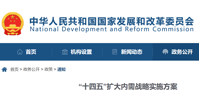 82條細化措施來了!國家發展改革委印發《“十四五”擴大內需戰略實施方案》