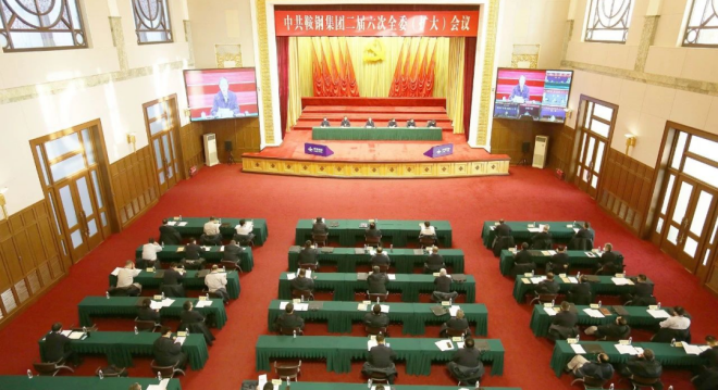 2022年12月29日,中共鞍鋼集團二屆六次全委(擴大)會議召開。鞍鋼集團黨委書記、董事長譚成旭主持會議並代表鞍鋼集團黨委常委會作題為《全麵貫徹落實黨的二十大精神 奮力譜寫建設世界一流企業新篇章》的工作報告。報告認真總結2022年鞍鋼集團各項工作,客觀分析當前麵臨的機遇挑戰,全麵部署2023年工作目標任務。