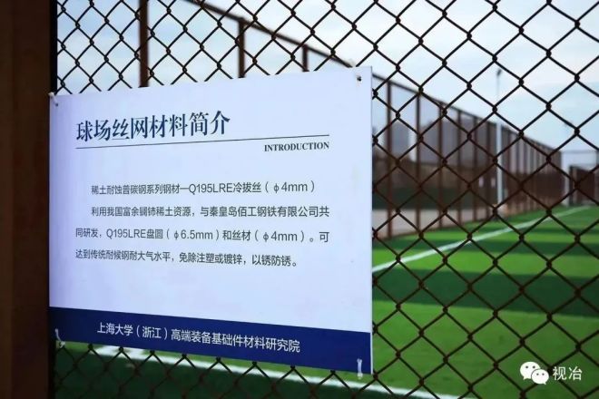 上善院園區裏展示的佰工鋼鐵與上善院共同研發的球場絲網材料