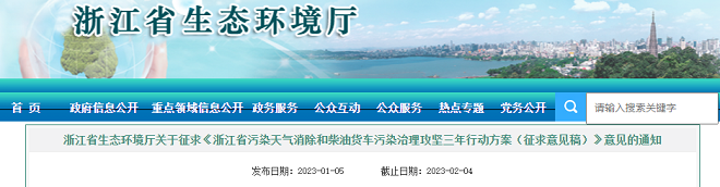 1月5日,浙江省生態環境廳發布通知,為持續深入打好藍天保衛戰,鞏固改善浙江省環境空氣質量,浙江省生態環境廳起草了《浙江省汙染天氣消除和柴油貨車汙染治理攻堅三年行動方案(征求意見稿)》(以下簡稱《方案》),擬會同省級相關部門聯合印發實施,現向社會公開征求意見。