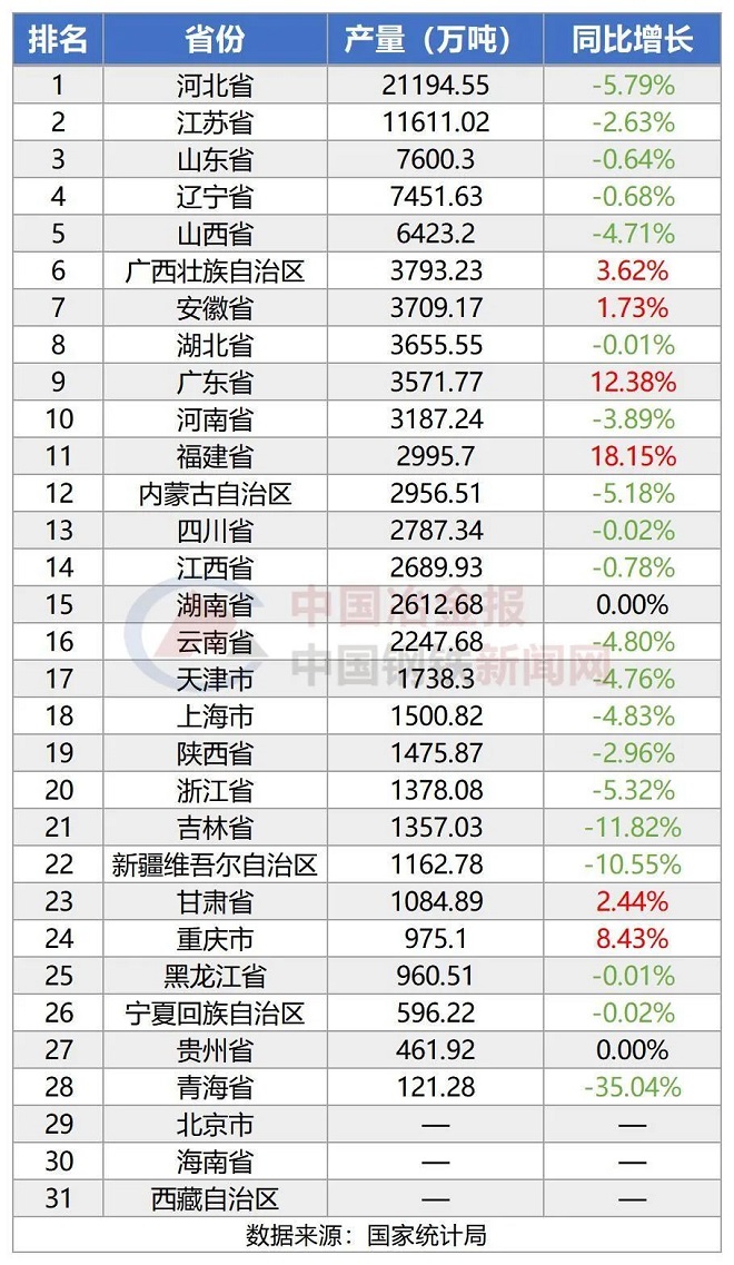 2022年全國粗鋼產量10.13億噸(附各省鋼產量排名)