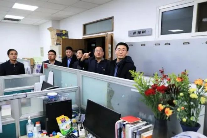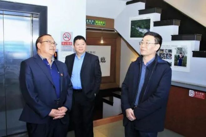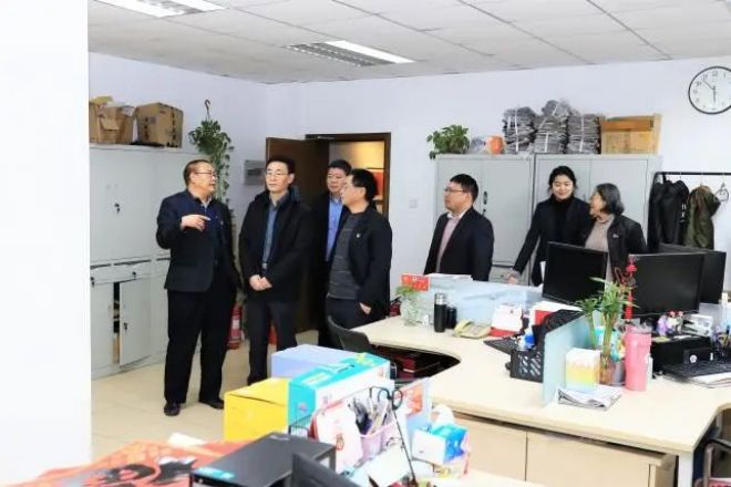 圖為唐祖君一行在陳玉千等人的陪同下參觀中國冶金報社