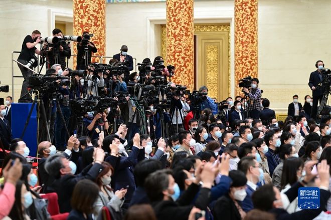 記者會在人民大會堂三樓金色大廳舉行,曆時約80分鍾,參加采訪的中外記者約500人。