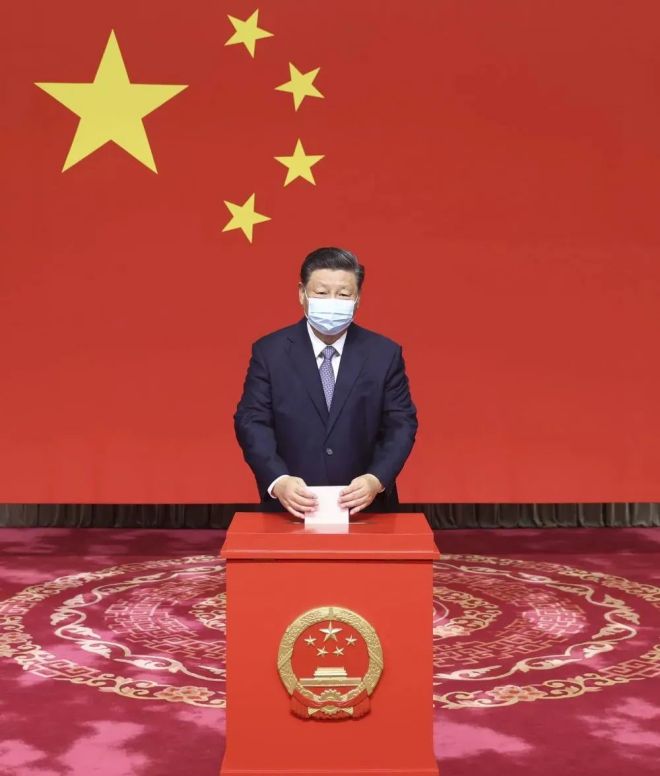 2021年11月(yue),習(xi)近(jin)平(ping)參(can)加(jia)北(bei)京(jing)市(shi)區(qu)人(ren)大(da)代(dai)表(biao)換(huan)屆(jie)選(xuan)舉(ju)投(tou)票(piao),用(yong)自(zi)己(ji)的(de)選(xuan)民(min)證(zheng)拿(na)到(dao)選(xuan)票(piao),寫(xie)票(piao)後(hou),投(tou)入(ru)票(piao)箱(xiang)。中(zhong)國(guo)最(zui)近(jin)一(yi)次(ci)縣(xian)鄉(xiang)兩(liang)級(ji)人(ren)大(da)換(huan)屆(jie)選(xuan)舉(ju)在(zai)去(qu)年(nian)6月底全麵完成。這次縣鄉人大換屆選舉涉及10.64億選民,是世界上規模最大的基層民主選舉之一。