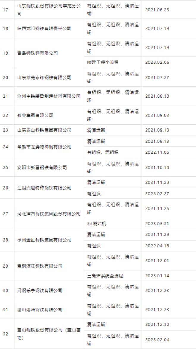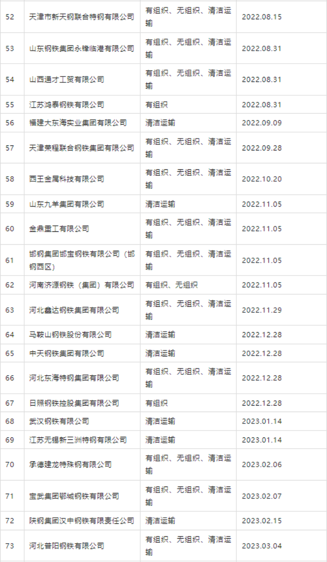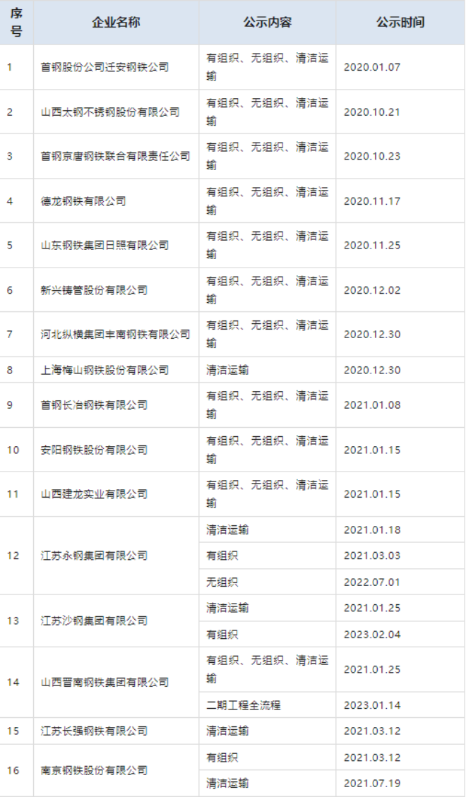 自2020年8月起,中國鋼鐵工業協會開展了鋼鐵企業超低排放改造和評估監測進展情況公示工作。從中國鋼鐵工業協會網站獲悉,截至2023年4月23日,已有78家企業在鋼協網站進行公示。