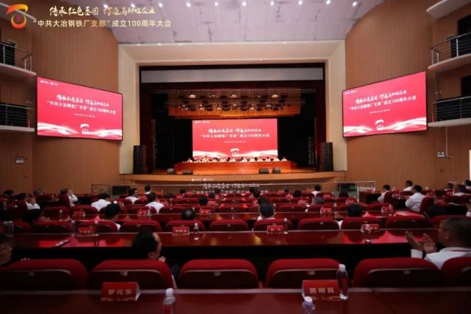圖為“中共大冶鋼鐵廠支部”成立100周年大會現場
