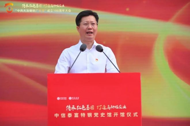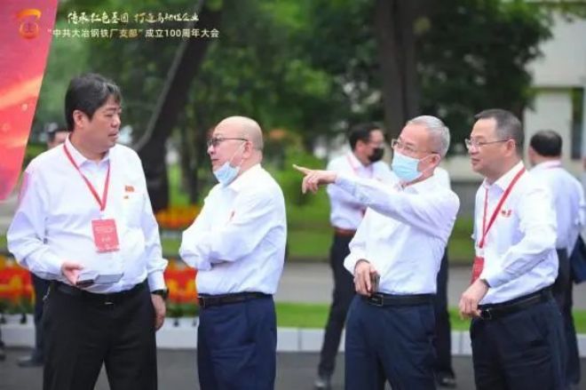 活動現場,黨徽閃耀,嘉賓雲集,氣氛熱烈。中信集團黨委書記、董事長朱鶴新,中國鋼鐵工業協會黨委書記、執行會長何文波,中信集團黨委副書記、總經理奚國華,黃石市委書記郤英才,黃石市委副書記、市長吳之淩,中信集團黨委委員、副總經理王國權,中信集團黨委委員、副總經理徐佐等領導出席活動。何文波受邀在“中共大冶鋼鐵廠支部”成立100周年大會上講話,並為中信泰富特鋼黨史館揭幕。
