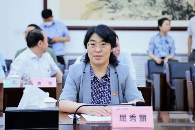 圖為鋼協黨委常委、副會長屈秀麗參加會議