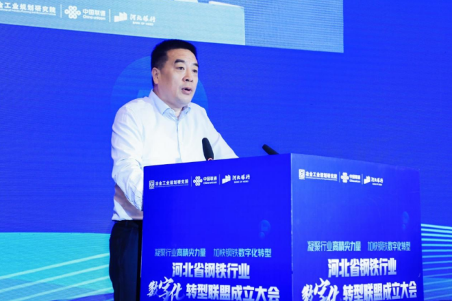 6月18日,由冶金工業規劃研究院主辦,中國聯通智慧鋼鐵軍團、河北銀行股份有限公司承辦,冶金工業經濟發展研究中心、金蝶軟件(中國)有限公司協辦的“河北省鋼鐵行業數字化轉型聯盟成立大會”在河北石家莊成功召開。會上,河北省鋼鐵行業數字化轉型聯盟揭牌成立,並選舉產生聯盟組織領導機構。