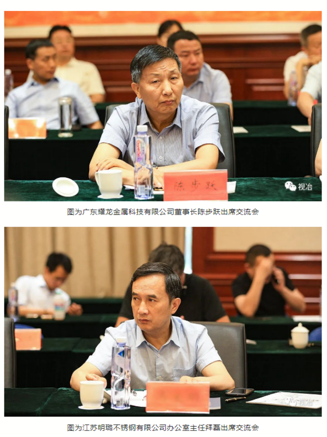 會議期間,與會代表前往江蘇“小陳故事”文化創意有限公司、江蘇星火特鋼有限公司調研,聽取了興化市不鏽鋼行業協會秘書長沈培林關於戴南鎮不鏽鋼行業發展情況的介紹。