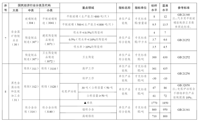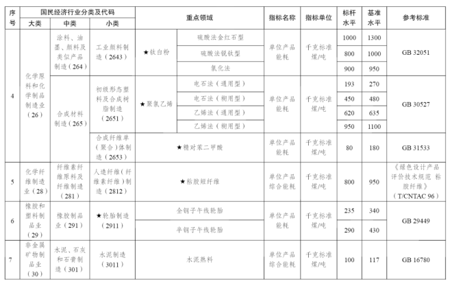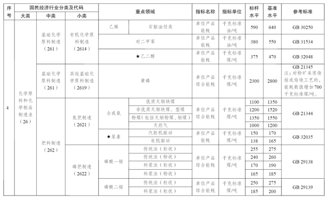 結合工業重點領域產品能耗、規模體量、技術現狀和改造潛力等,進一步拓展能效約束領域。在此前明確煉油、煤製焦炭、煤製甲醇、煤製烯烴、煤製乙二醇、燒堿、純堿、電石、乙烯、對二甲苯、黃磷、合成氨、磷酸一銨、磷酸二銨、水泥熟料、平板玻璃、建築陶瓷、衛生陶瓷、煉鐵、煉鋼、鐵合金冶煉、銅冶煉、鉛冶煉、鋅冶煉、電解鋁等25個(ge)重(zhong)點(dian)領(ling)域(yu)能(neng)效(xiao)標(biao)杆(gan)水(shui)平(ping)和(he)基(ji)準(zhun)水(shui)平(ping)的(de)基(ji)礎(chu)上(shang),增(zeng)加(jia)乙(yi)二(er)醇(chun),尿(niao)素(su),鈦(tai)白(bai)粉(fen),聚(ju)氯(lv)乙(yi)烯(xi),精(jing)對(dui)苯(ben)二(er)甲(jia)酸(suan),子(zi)午(wu)線(xian)輪(lun)胎(tai),工(gong)業(ye)矽(gui),衛(wei)生(sheng)紙(zhi)原(yuan)紙(zhi)、紙巾原紙,棉、化纖及混紡機織物,針織物、紗線,粘膠短纖維等11個領域,進一步擴大工業重點領域節能降碳改造升級範圍。