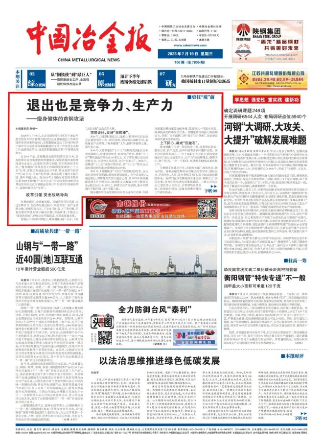 【1】 凡本網注明"來源:中國冶金報—中國鋼鐵新聞網"的所有作品,版權均屬於中國鋼鐵新聞網。媒體轉載、摘編本網所刊 作品時,需經書麵授權。轉載時需注明來源於《中國冶金報—中國鋼鐵新聞網》及作者姓名。違反上述聲明者,本網將追究其相關法律責任。