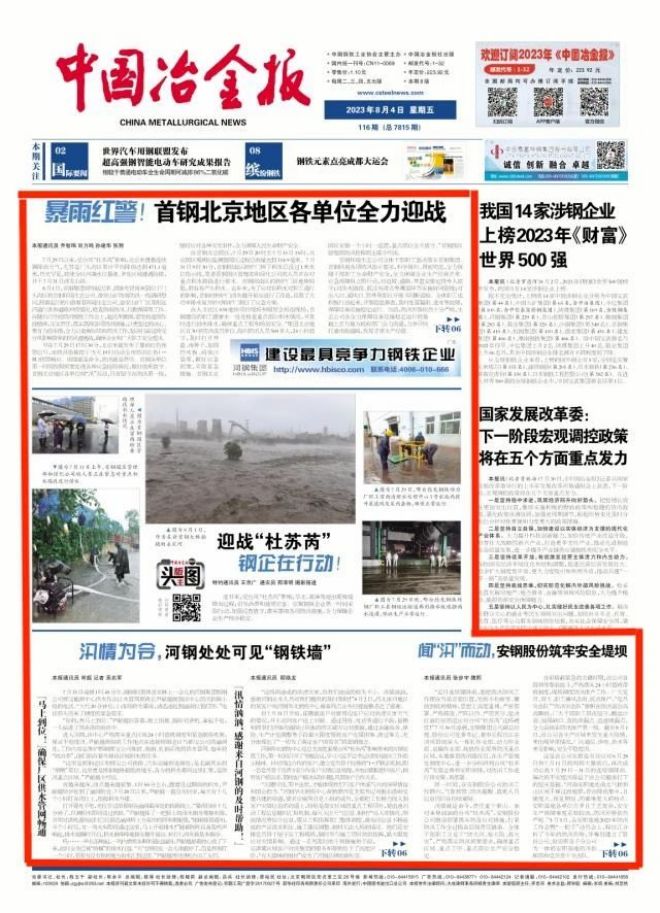 “這場雨造成的洪澇災害,給我們造成的損失不小。汛情洶洶,感謝河鋼業務人員對我們提供的及時幫助!”8月2日,河北涿州地區的某客戶向河鋼華北銷售中心唐秦網點業務經理崔鍇表達了感謝。