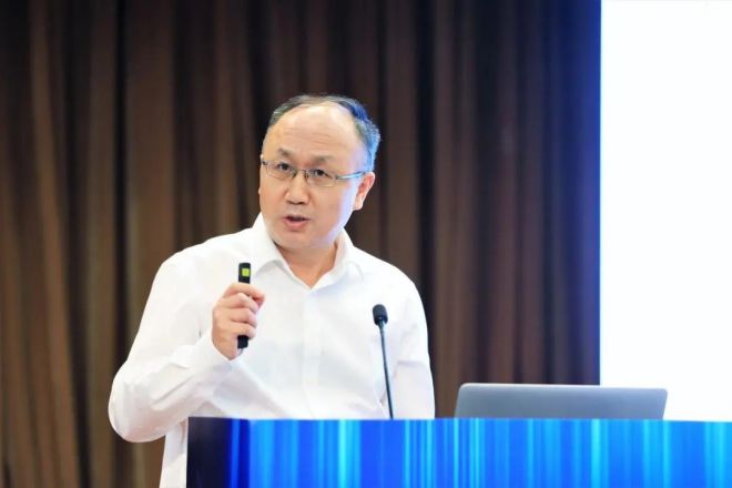 圖為國家電投集團綠能科技發展有限公司總經理高清潔做題為《鋼鐵行業綜合智慧能源整體解決方案》的報告