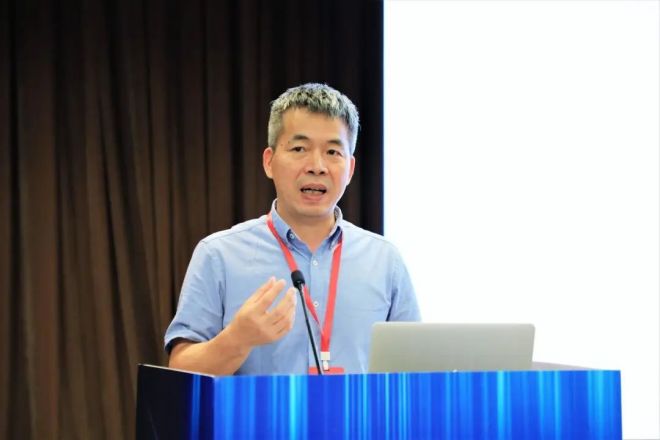 圖為北京科技大學碳中和研究院教授朱榮做電爐技術發展的報告