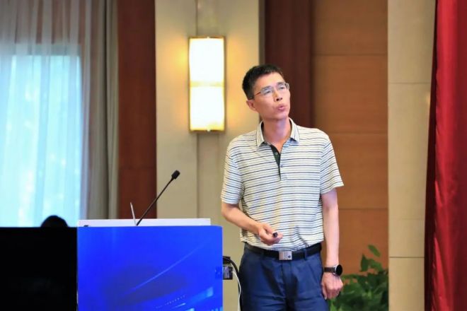 圖為鋼協科技環保部副處長張大鵬做鋼鐵行業重點工序能效對標數據填報係統介紹及電爐專題數據分析的報告