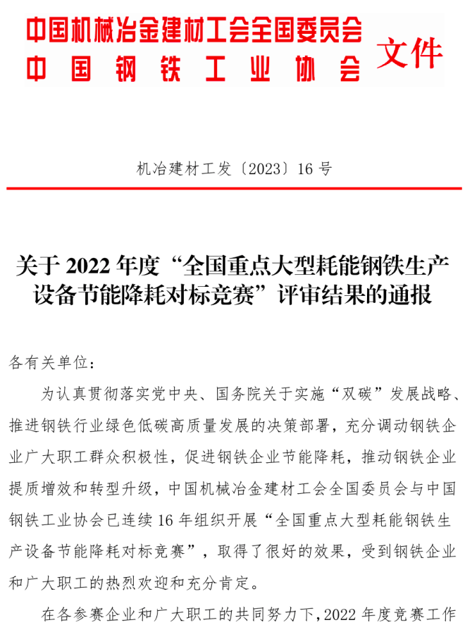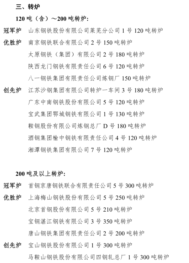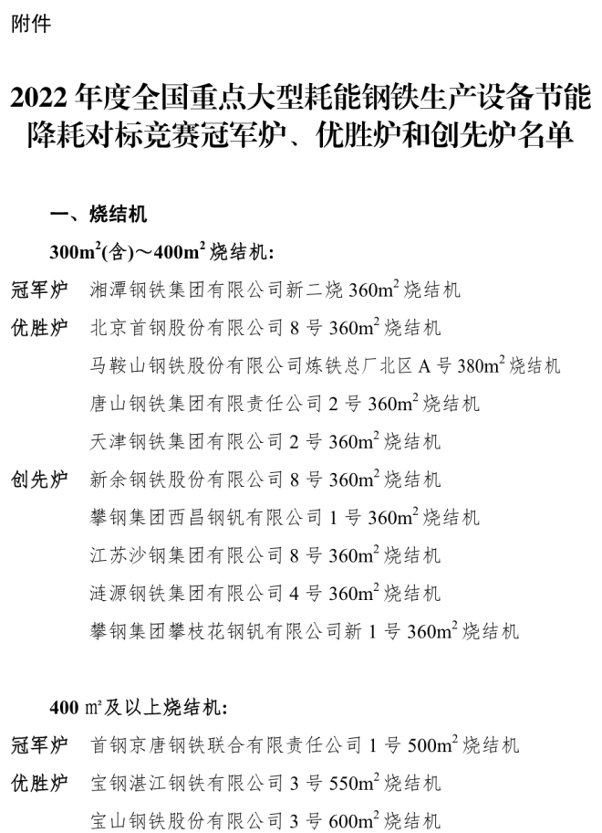 冠軍爐、優勝爐、創先爐名單 | 2022年度全國重點大型耗能鋼鐵生產設備節能降耗對標競賽